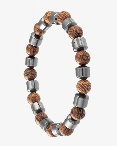 سوار خشب طبيعي وخرز اسود تيتانيوم