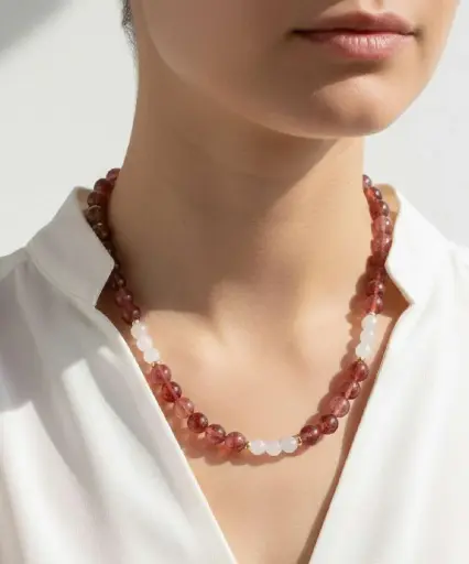 عقد حجر الستروبيري كوارتز والجاد الطبيعي